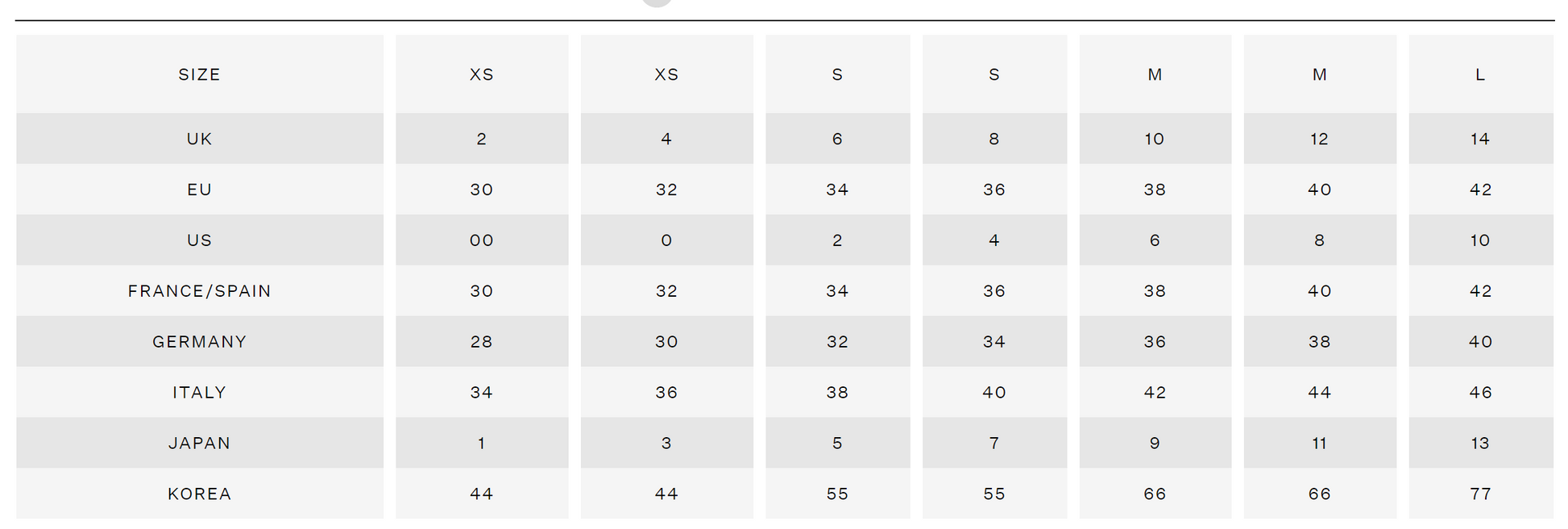 - Size XS