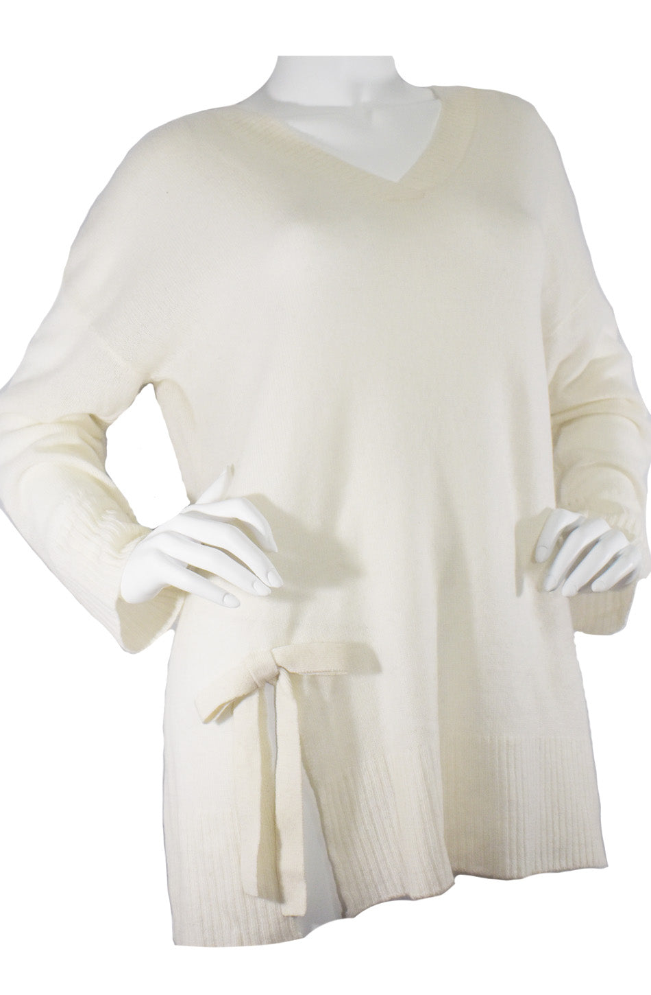 This In Cashmere bow detail cashmere sweater is crafted from 100% pure wool and will provide a timelessly sophisticated silhouette. Exquisitely designed with delicate side slits and a luxe bow detail, its semi-sheer fabric allows for subtle glimpses of sophistication. An elegant, tasteful addition to any wardrobe.