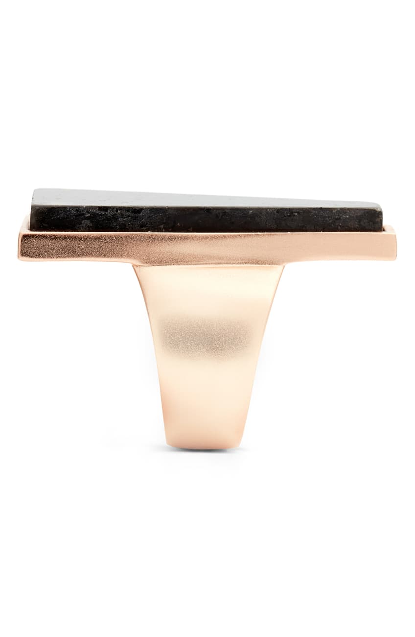 Kendra Scott Collins Rose Gold Plated Cocktail Ring In Black Granite - Size 7