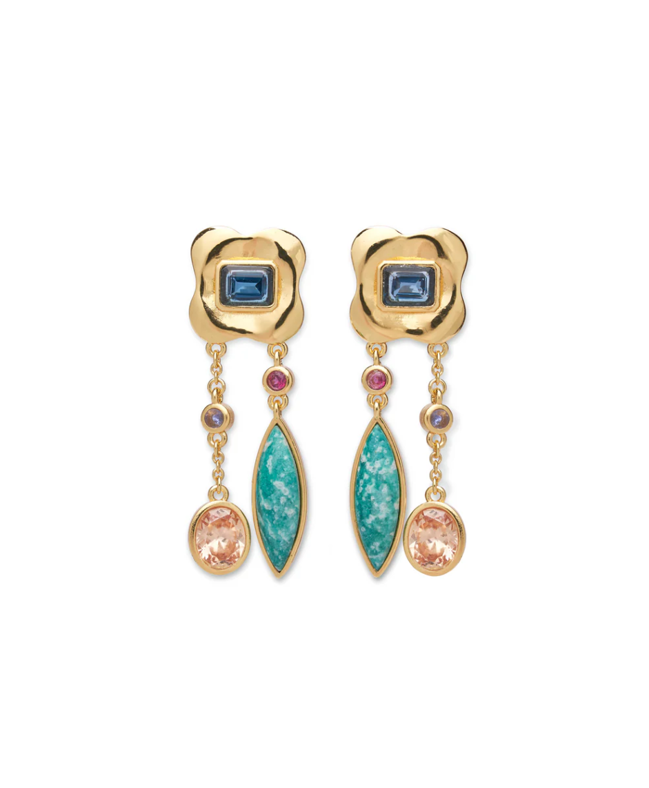 Add a touch of luck to your style with these gorgeous Lizzie Fortunato Trefoil Earrings. These playful yet refined earrings feature a classic clover graphic motif, with blue topaz inset tops and colorful semiprecious drops. Elevate your look with a pop of color and expertly crafted design.