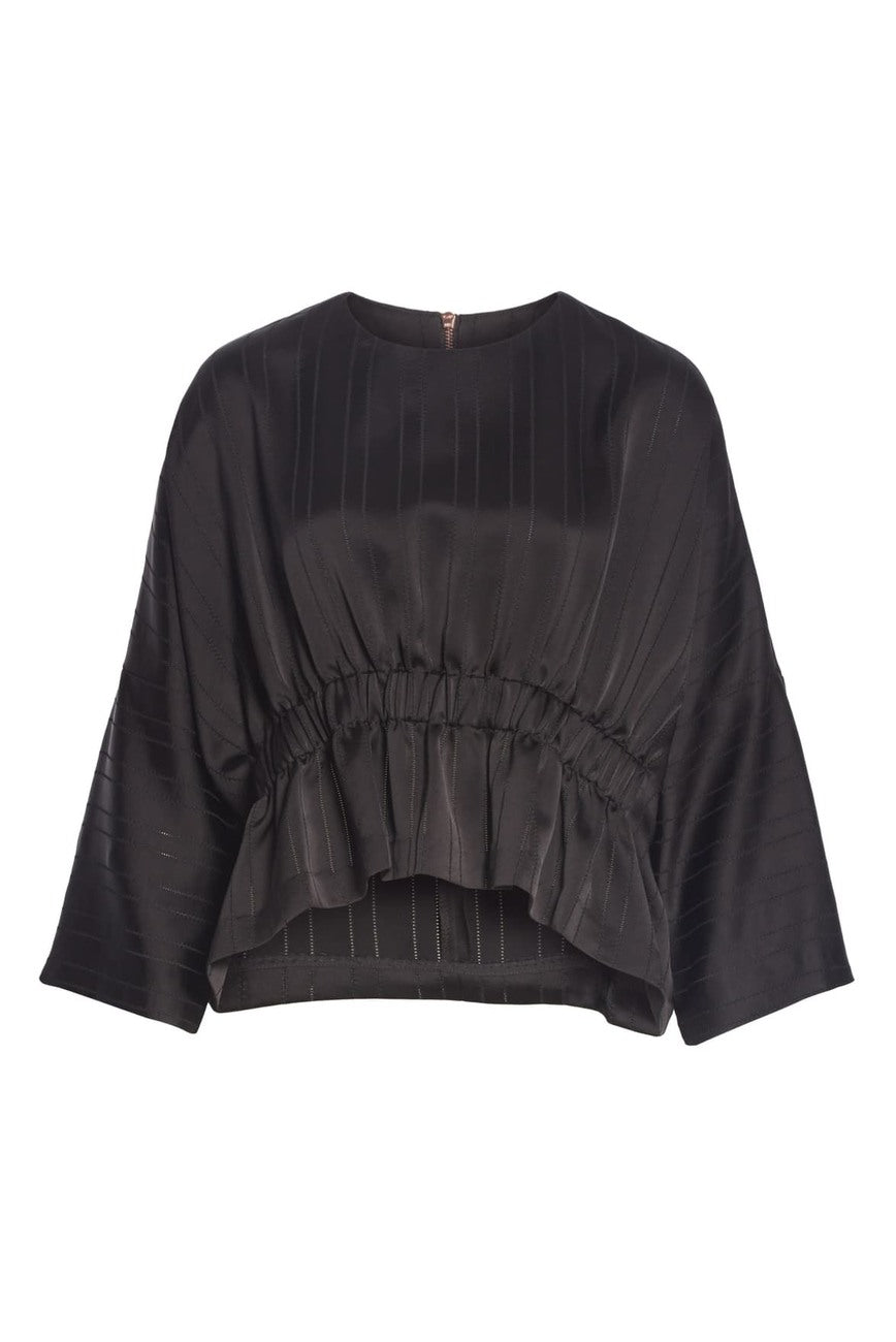 This Ted Baker London Cropped Ruched Blouse offers a timelessly luxurious look. Its delicately-crafted vertical stitching and ruched waist detail add a sophisticated touch, while its jewel neckline creates an elegant silhouette. The perfect piece to add a touch of class to any wardrobe.