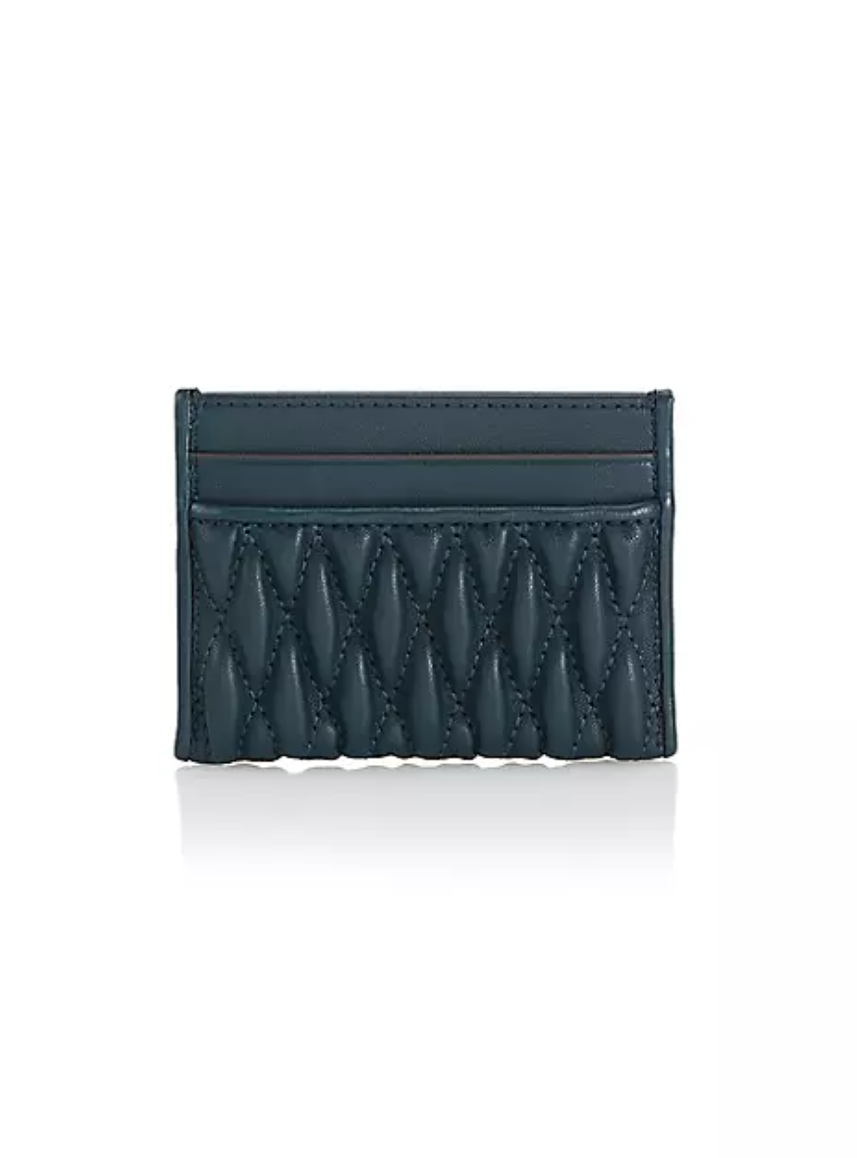 Tory Burch Kira Ruched Leather Card Case in Teal Night